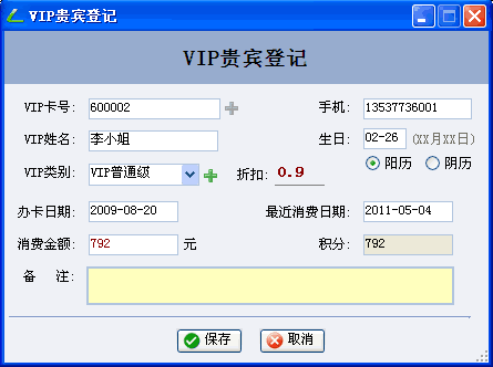 选定需修改的VIP,点击工具栏上的“修改”命令,即可在弹出的对话框中修改现有VIP基本信息。